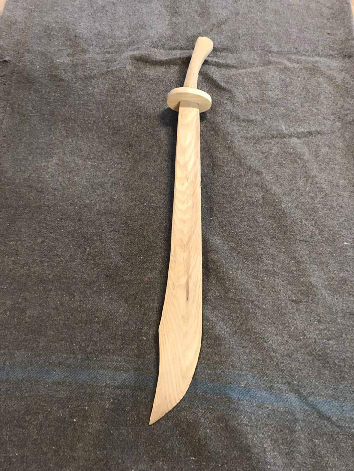 ![]() Torsootje van esdoorn, gepresenteerd op een zuiltje van kerselaar, afgewerkt met steenrood. |